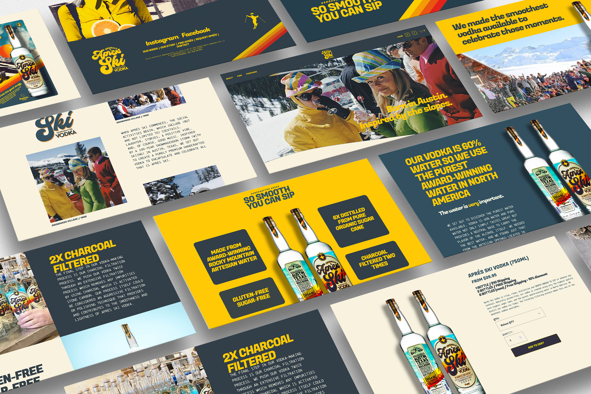 Aprés Ski Vodka’s digital presence was reimagined from the ground up to capture the essence of refined adventure and modern luxury. The new website immerses visitors in the brand’s bold aesthetic — blending crisp visuals, smooth storytelling, and elevated design to mirror the purity of the vodka itself. Every detail, from the sleek bottle photography to the fluid browsing experience, was crafted to reflect the après-ski lifestyle — sophisticated, effortless, and unforgettable.