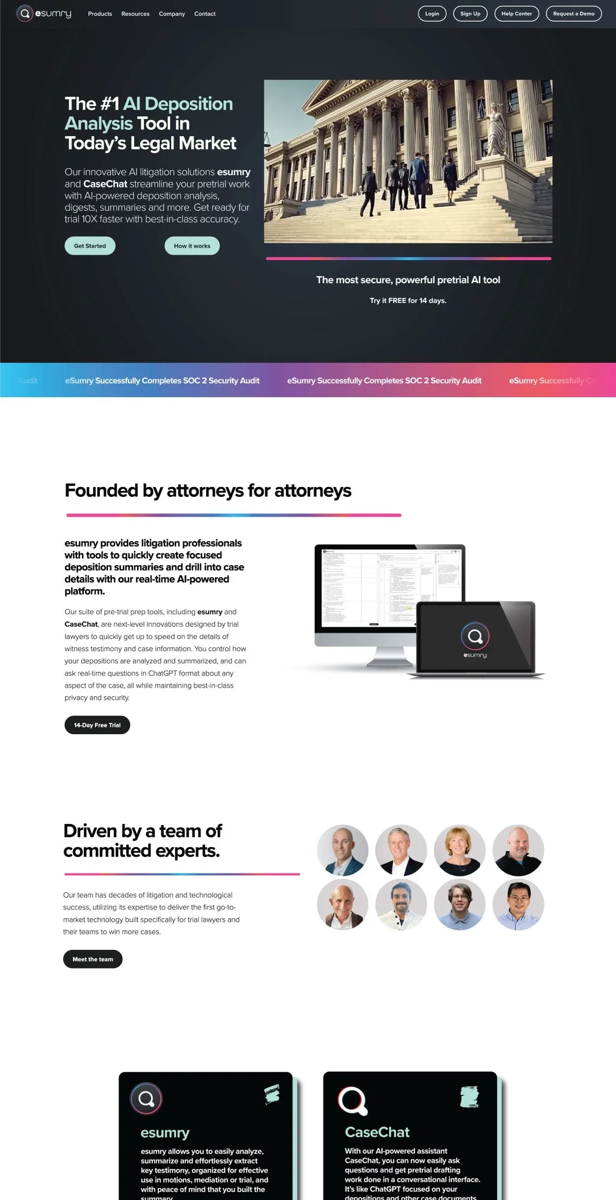 eSumry is a Norfolk, Virginia-based AI legal tech company that has developed SAAS tools designed to assist legal professionals, such as attorneys and paralegals, by leveraging AI to streamline the process of analyzing and summarizing deposition transcripts. It uses advanced GPT models to generate fast, automatic summaries and includes features like dynamic word indexing, keyword searching, and AI-driven insights to identify critical parts of the testimony.