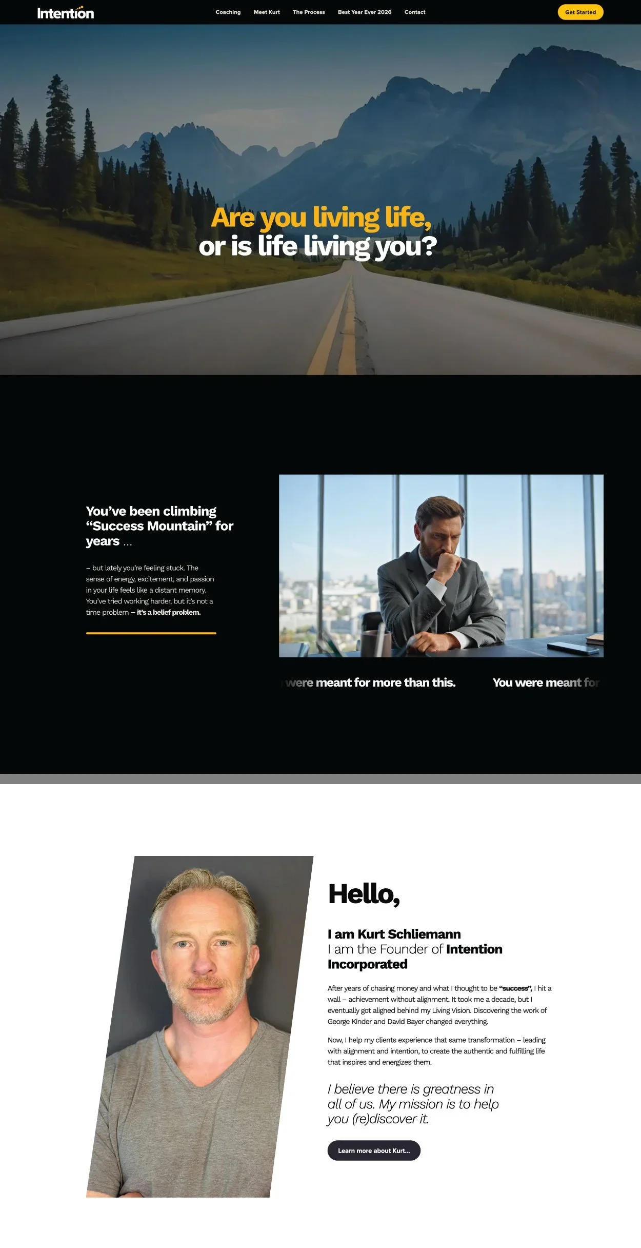 Intention Coaching was born from Kurt Schliemann’s personal journey — years spent chasing money and traditional “success,” only to collide with the realization that achievement without alignment is empty. After a decade of deep inner work and discovering the transformative teachings of George Kinder and David Bayer, Kurt reconnected with clarity, purpose, and his Living Vision.
